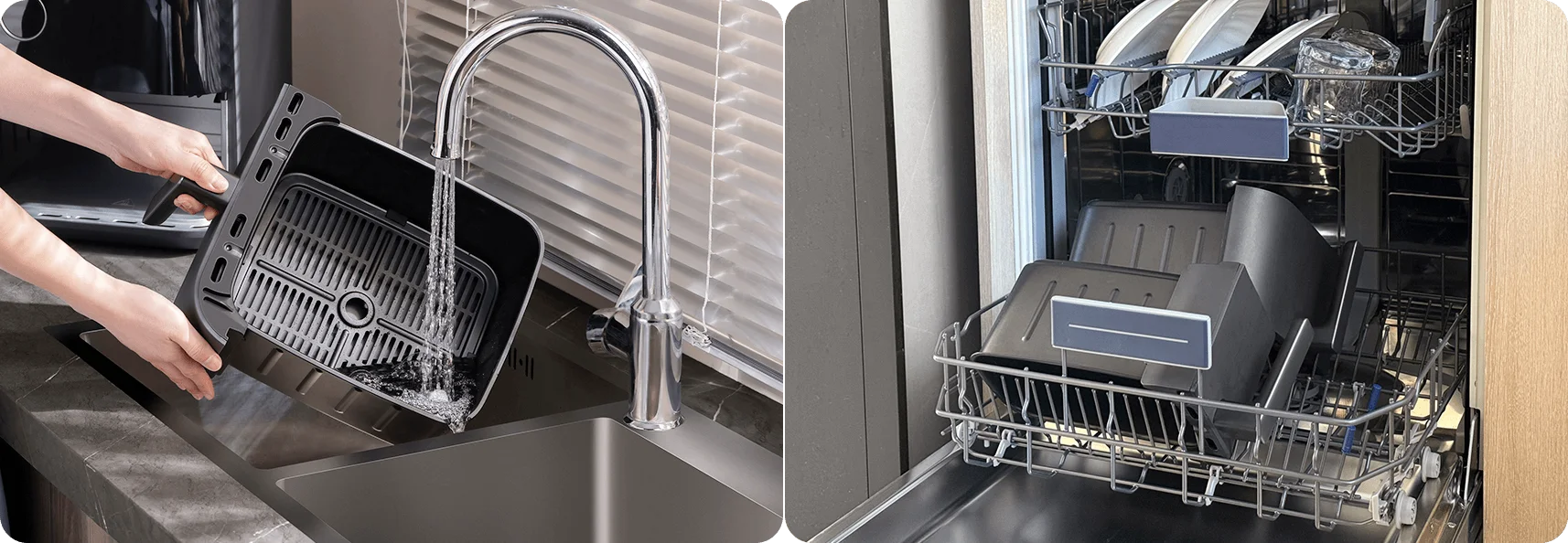 Аэрогриль поддерживает до 230°C для жарки и запекания, а также 40–60°C для размораживания, ферментации или сушки фруктов. Это универсальный помощник, который заменяет сразу несколько кухонных приборов.