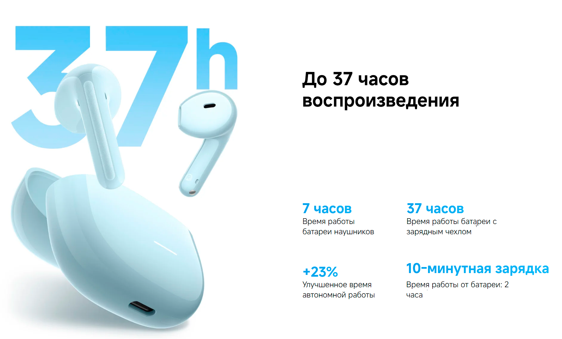 | Время работы (с зарядным кейсом) | до 37 ч |