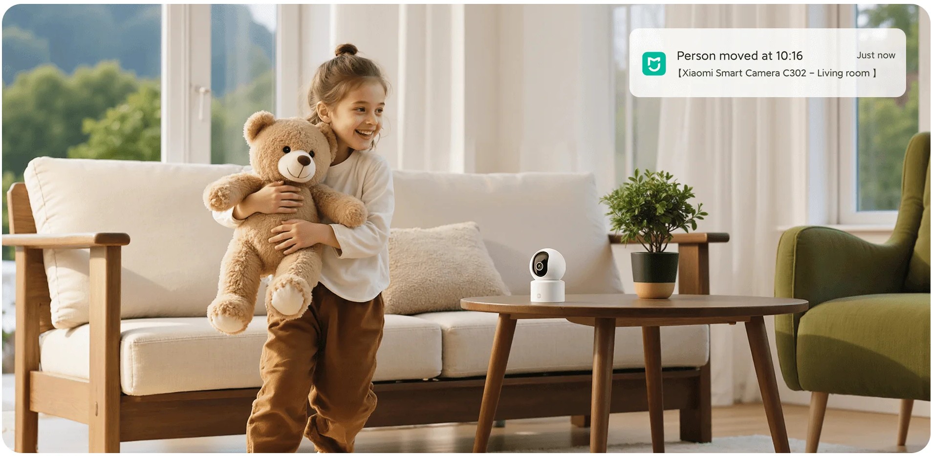 Xiaomi Smart Camera C302 предназначена для установки внутри помещений и выполнена в компактном корпусе из прочного пластика. Камера легко размещается на полке или крепится на стену с помощью комплектного крепления. Небольшие габариты и нейтральный белый цвет позволяют использовать устройство в жилых комнатах, детской или рабочем пространстве без визуального дискомфорта.