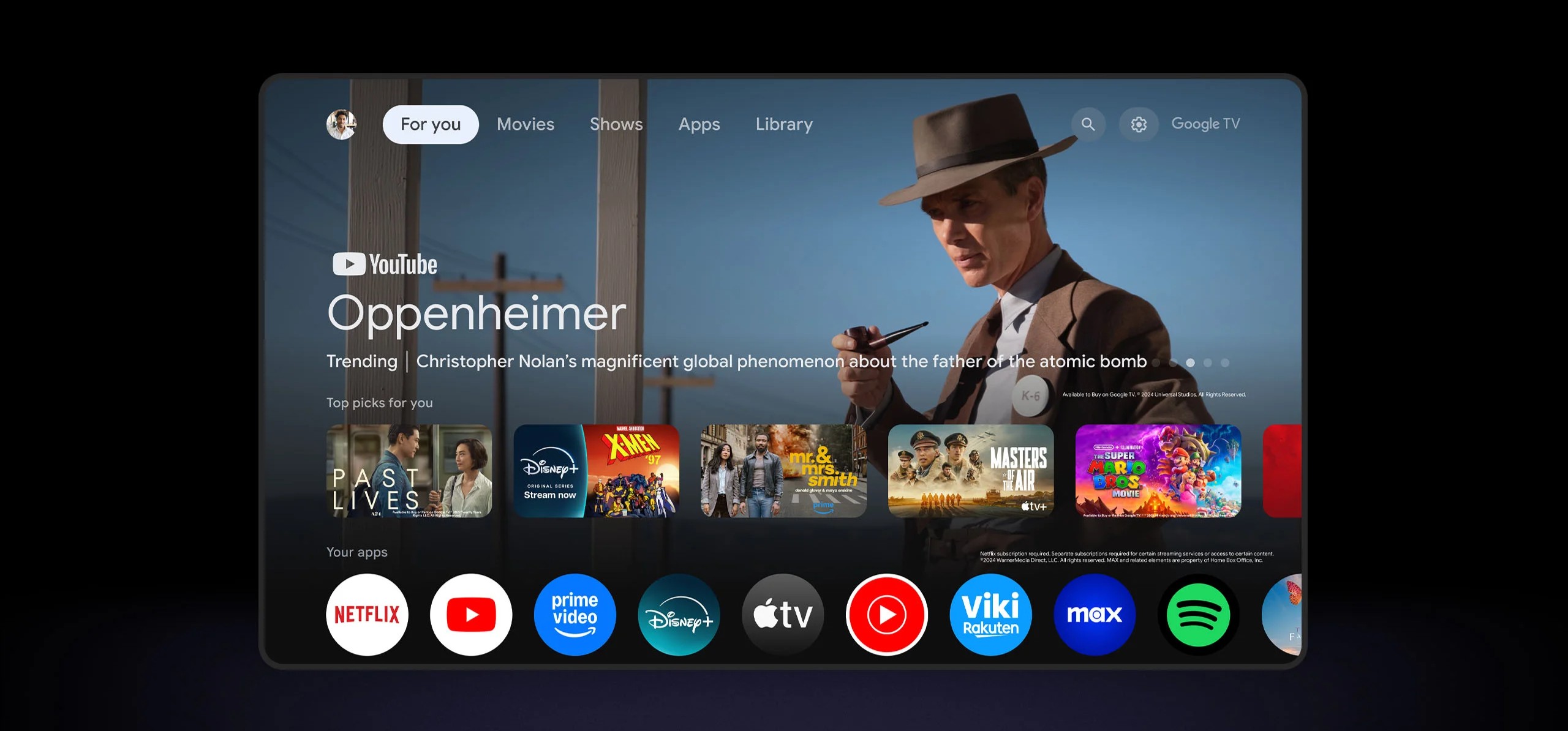 Медиаплеер работает на базе Android TV с Google TV, что открывает доступ к тысячам фильмов, сериалов и приложений. Пульт дистанционного управления поддерживает Google Assistant, позволяя искать контент, запускать приложения и управлять устройствами умного дома голосом.