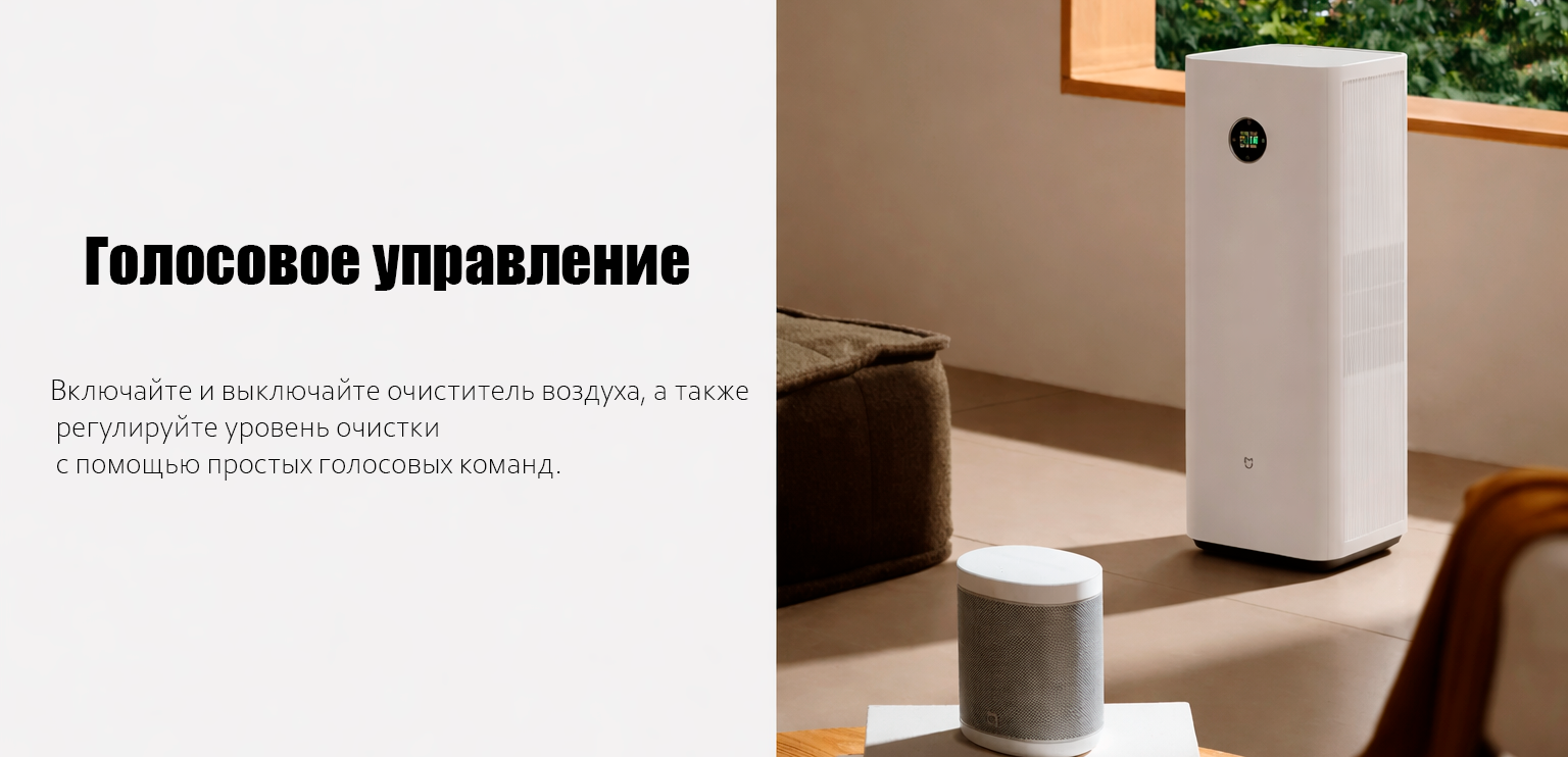 Для управления используются сенсорная панель и подключение по Wi-Fi через приложение Xiaomi Home. Очиститель поддерживает контроль чистоты воздуха, регулировку скорости вентилятора и таймер, что позволяет гибко настраивать его работу под разные сценарии. Также модель совместима с Google Ассистентом и Alexa, поэтому управлять устройством можно и с помощью голосовых команд.