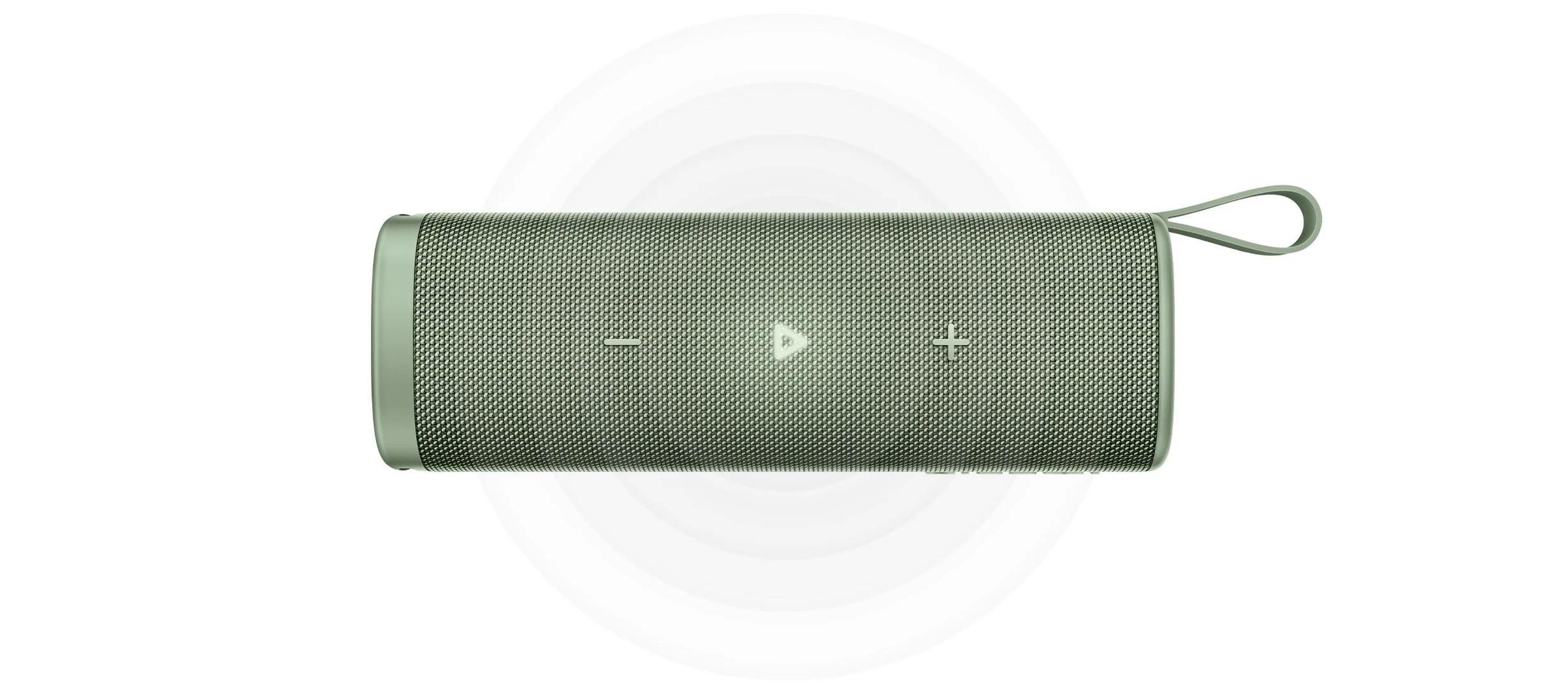 Колонка создаёт удивительно объёмное звучание для своих компактных размеров. Большая площадь сетки помогает раскрыть динамичный и прозрачный звук, а равномерное распределение аудиопотока делает прослушивание комфортным в любой части комнаты или на улице.