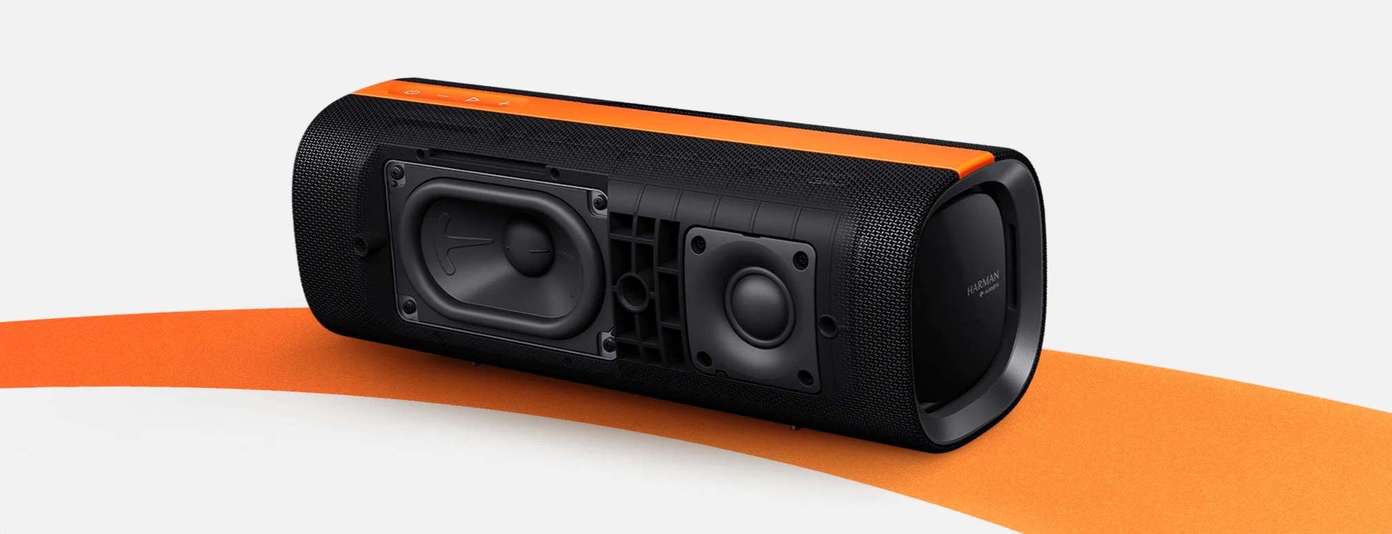 Акустическая система оснащена двумя динамиками общей мощностью 50 Вт. Поддержка технологий Bass Boost и Harman AudioEFX делает звук насыщенным, с мощными низкими частотами и чёткой детализацией на всём диапазоне от 60 Гц до 20 кГц. Колонка легко справляется как с энергичными треками, так и с более спокойными композициями.