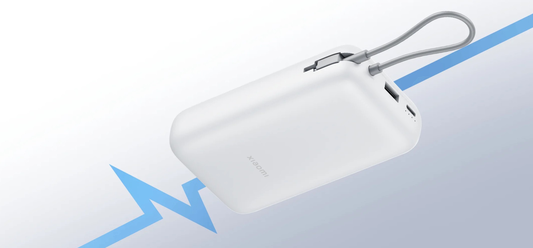 Пауэрбанк оснащён портом USB Type-C и USB-A, а также встроенным кабелем, что позволяет одновременно заряжать до трех устройств. Такое решение удобно в поездках и повседневном использовании, когда нужно подпитать несколько гаджетов без дополнительных аксессуаров. Вход для зарядки самого аккумулятора реализован через USB Type-C.