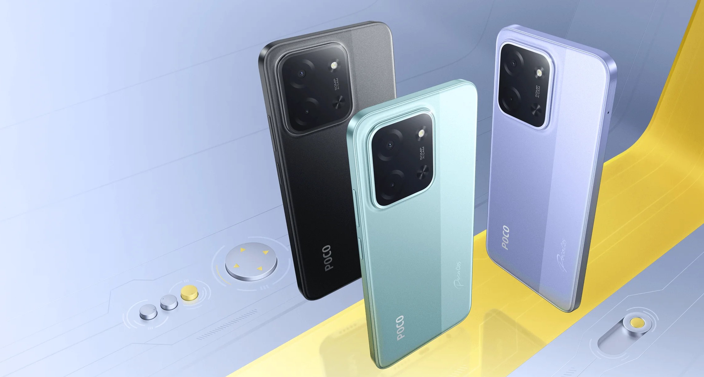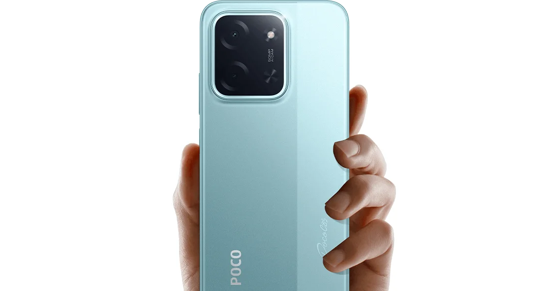 POCO C85 сразу обращает на себя внимание крупным 6.9-дюймовым экраном, заключённым в тонкий корпус толщиной всего 7.99 мм. Смартфон весит 205 г и удобно ложится в руку, несмотря на габариты. Задняя крышка выполнена из пластика со стеклянными элементами, а изящные переливы подчёркивают современный стиль устройства.