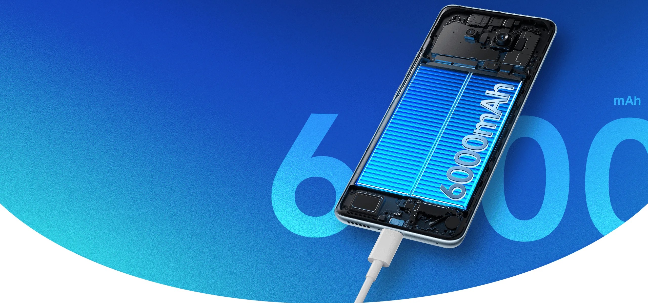 Аккумулятор ёмкостью 6000 мА·ч на базе кремний-углеродной технологии рассчитан на длительную работу без подзарядки в течение дня. Смартфон поддерживает быструю зарядку через USB Type-C, а также реверсивную зарядку мощностью до 18 Вт.