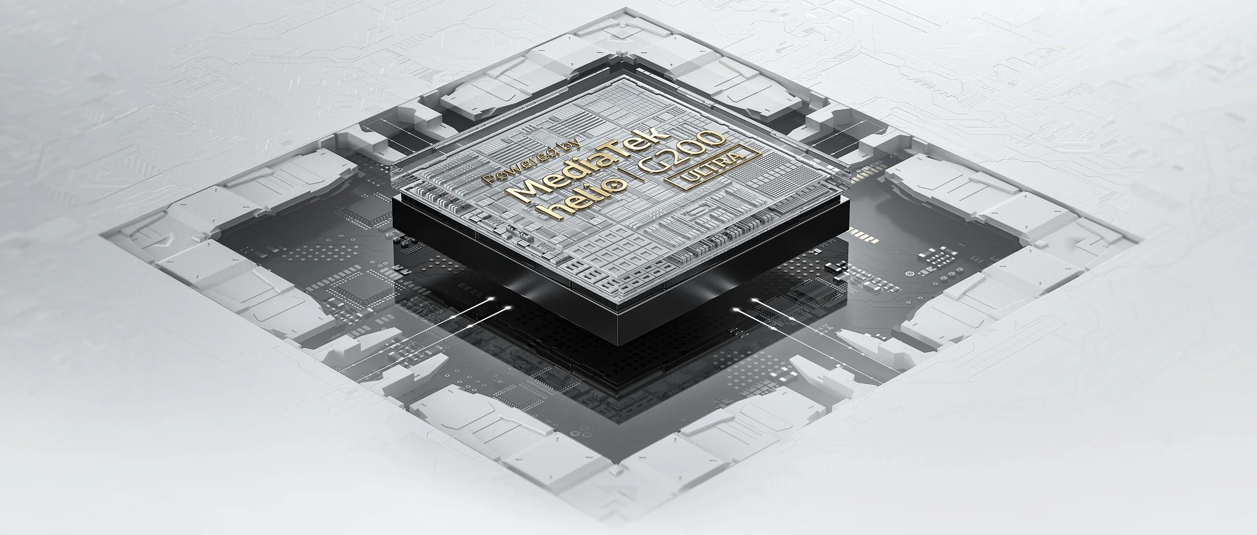 Redmi Note 15 Pro работает на восьмиядерном процессоре MediaTek Helio G200 Ultra с тактовой частотой до 2,2 ГГц и графикой Mali-G57 MC2.