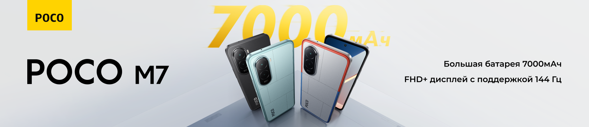 POCO M7 — новый уровень автономности и производительности. Аккумулятор 7000 мАч с кремний-углеродной технологией обеспечивает до 2 дней работы без подзарядки — до 28 часов видео или 46 часов звонков. Функция Battery Extender позволяет работать даже при -20°C, а 1% заряда дает 64 минуты разговора. 33-ваттная быстрая зарядка дополняется реверсивной зарядкой 18 Вт для других устройств. 6,9-дюймовый FHD+ экран с частотой 144 Гц и защитой зрения TÜV Rheinland обеспечивает плавное изображение, а стереодинамики с Hi-Res Audio — качественный звук. Современный дизайн с защитой IP64, процессор Snapdragon 685 и HyperOS 2 гарантируют высокую производительность. Двойная основная камера 50 МП с ночным режимом и фронтальная 8 МП камера с AI-улучшениями помогут запечатлеть каждый момент. POCO M7 — идеальный выбор для тех, кто ценит автономность, мощность и стиль.